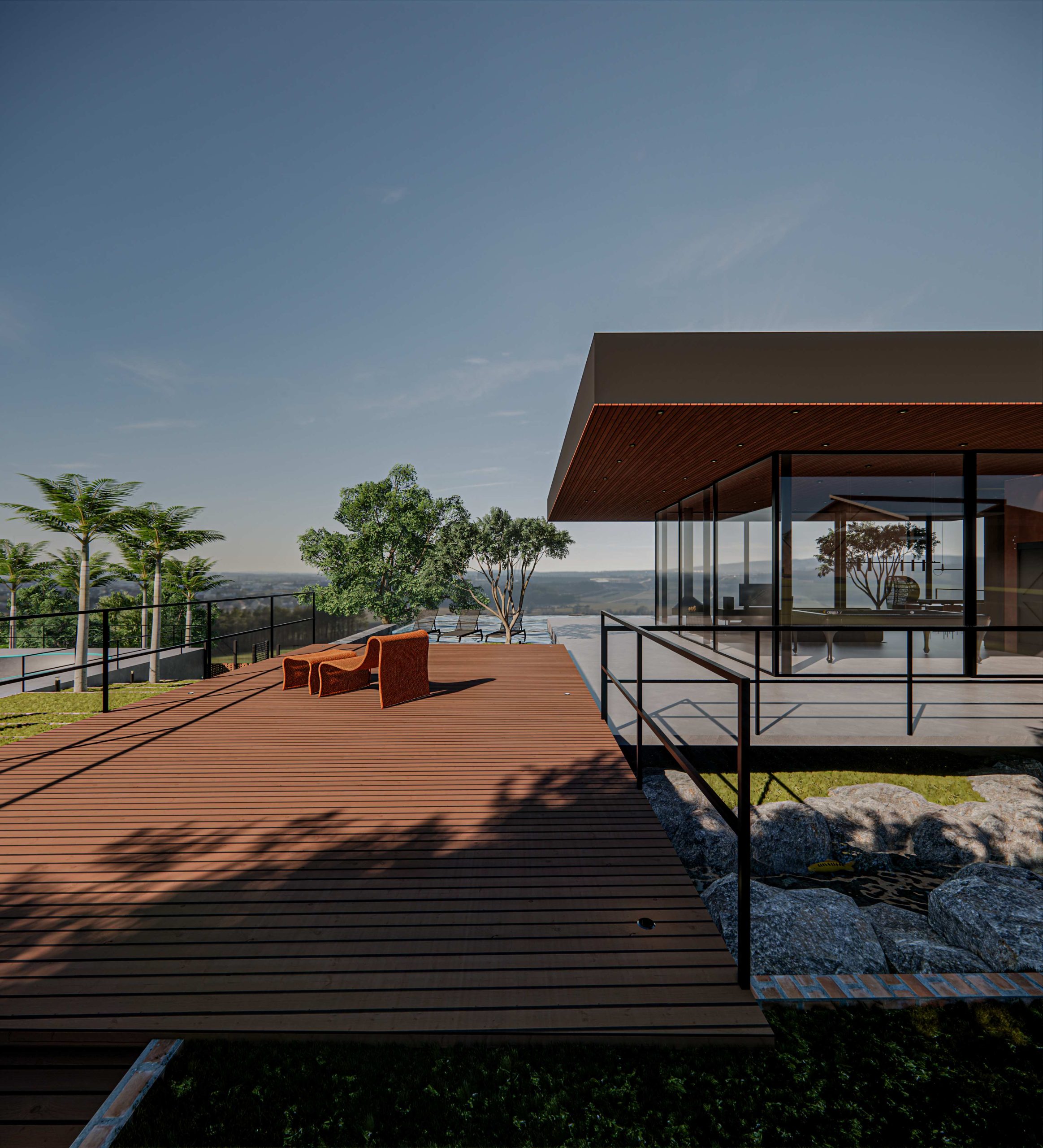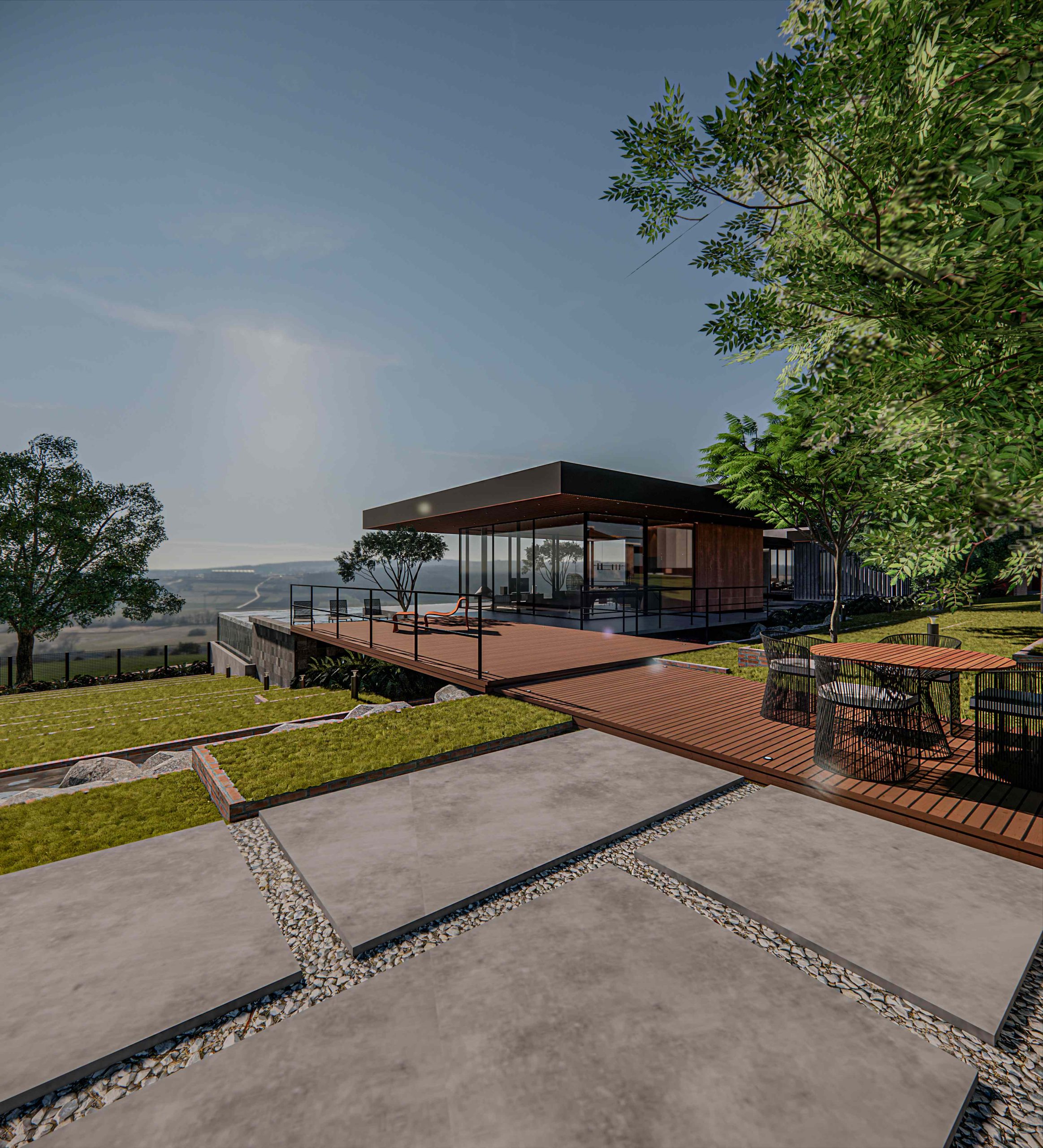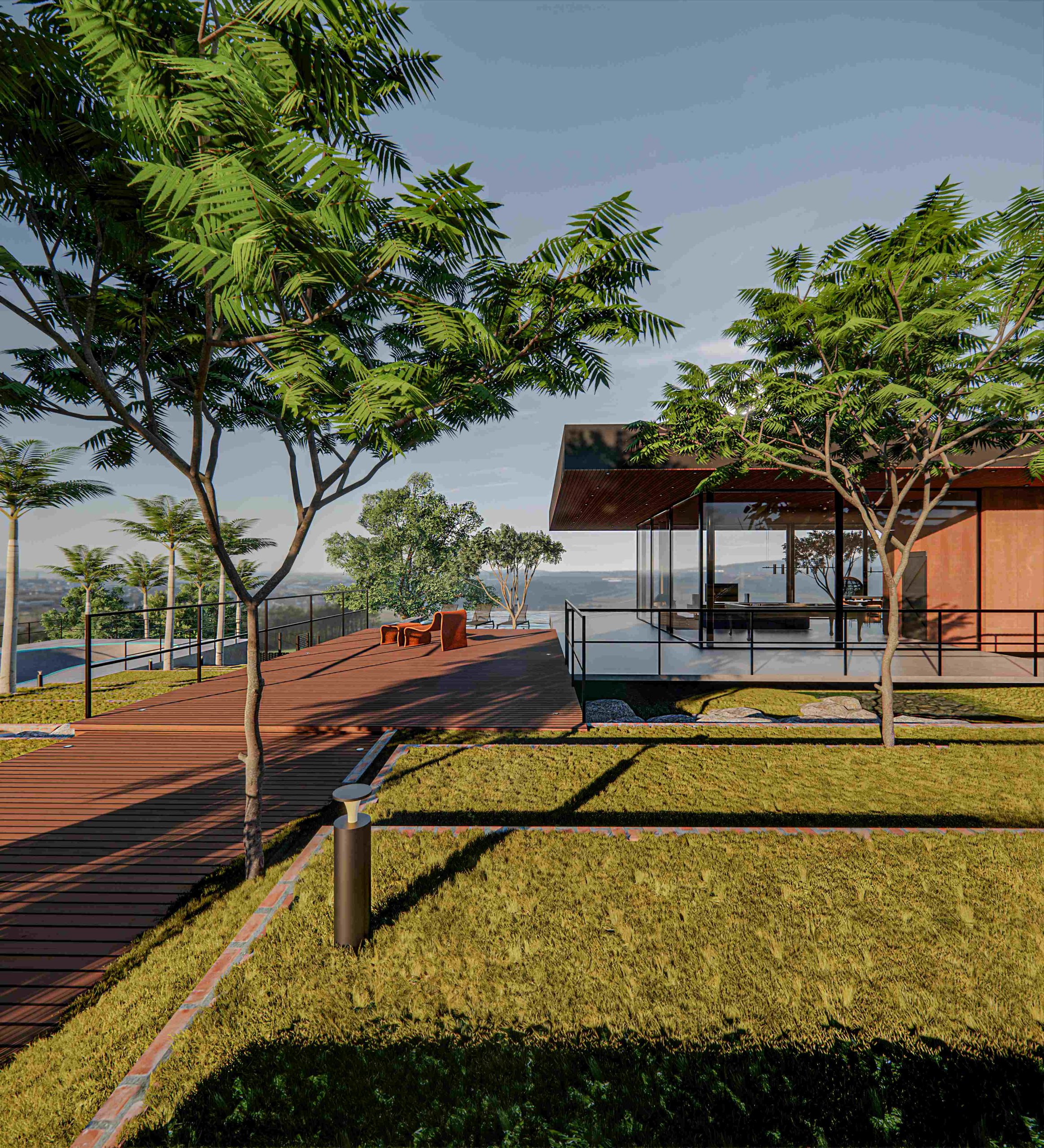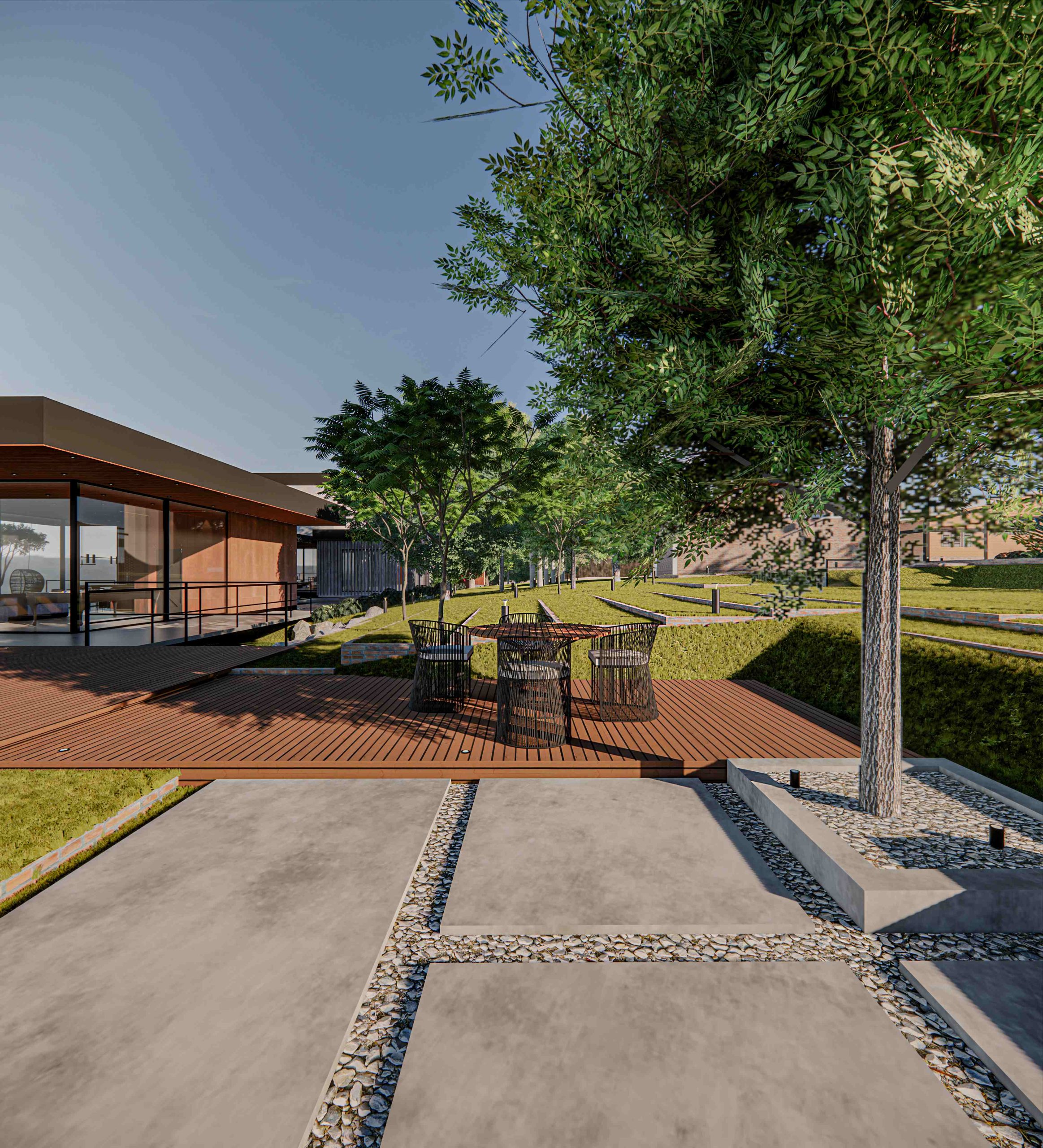 O estilo do projeto busca transmitir uma essência simples, elegante e natural, através dos espaços e dos materiais, mostrando respeito pela natureza e proporcionando a família sensação de tranquilidade e serenidade. Cada ambiente conduzirá a melhoria das experiências ao ar livre, contemplando e vivenciando a qualidade de vida elevada que a natureza proporciona.
