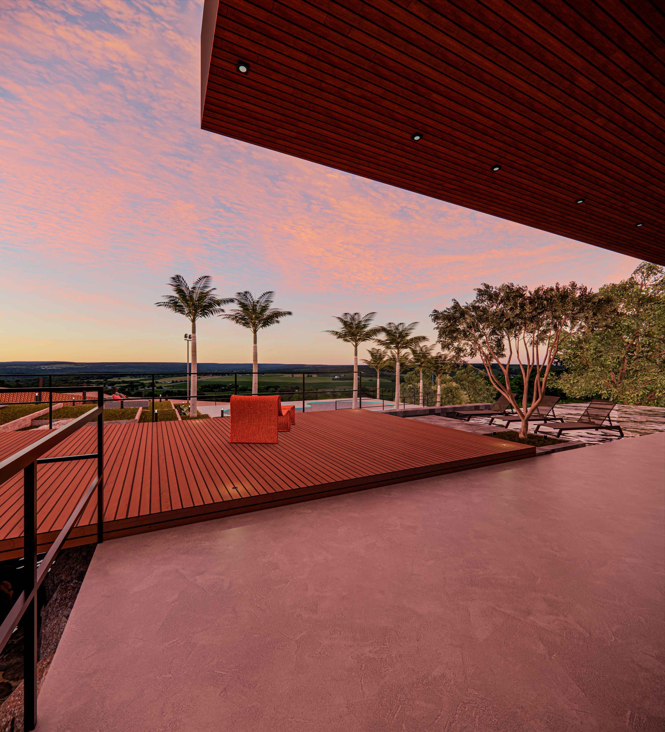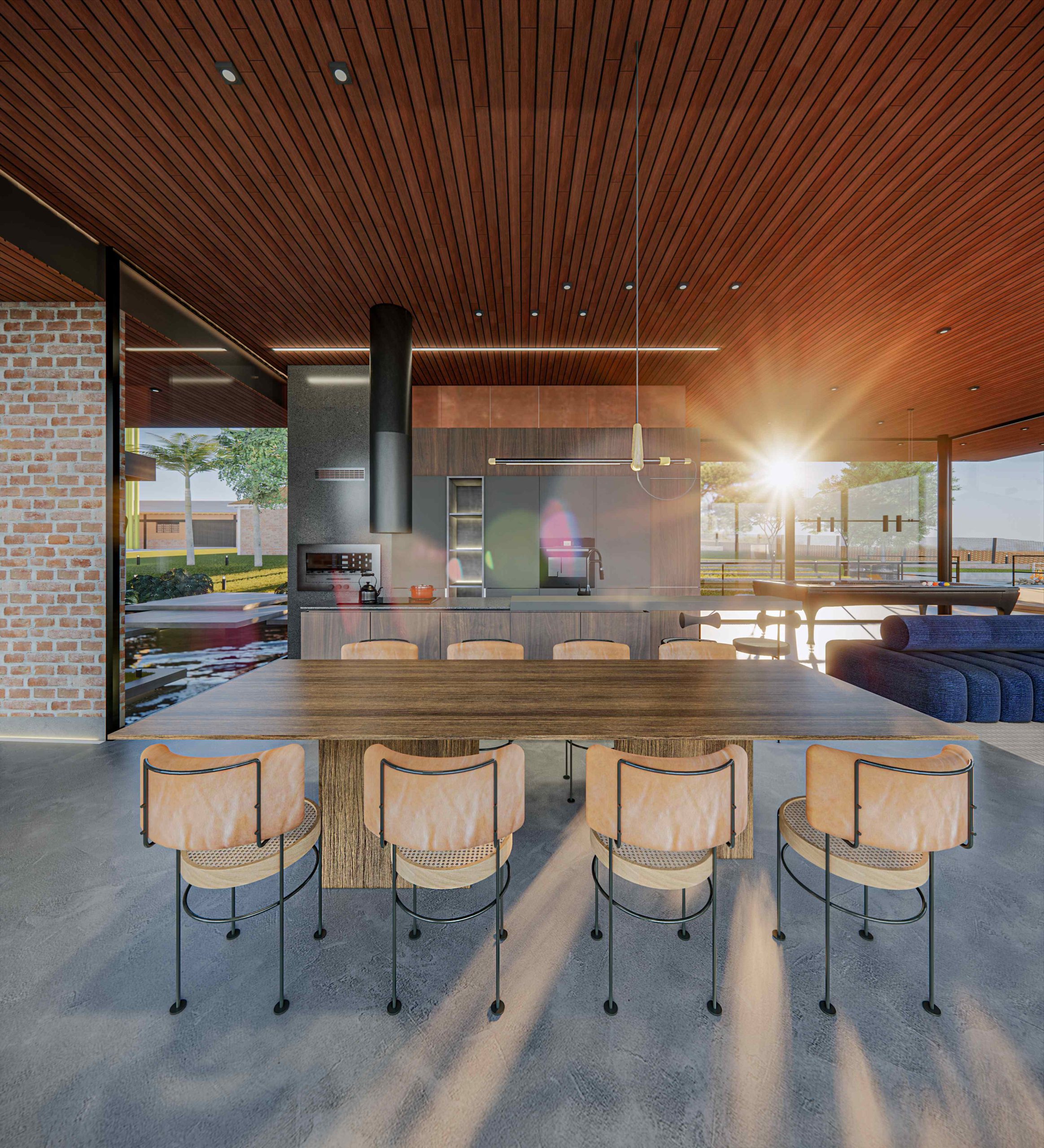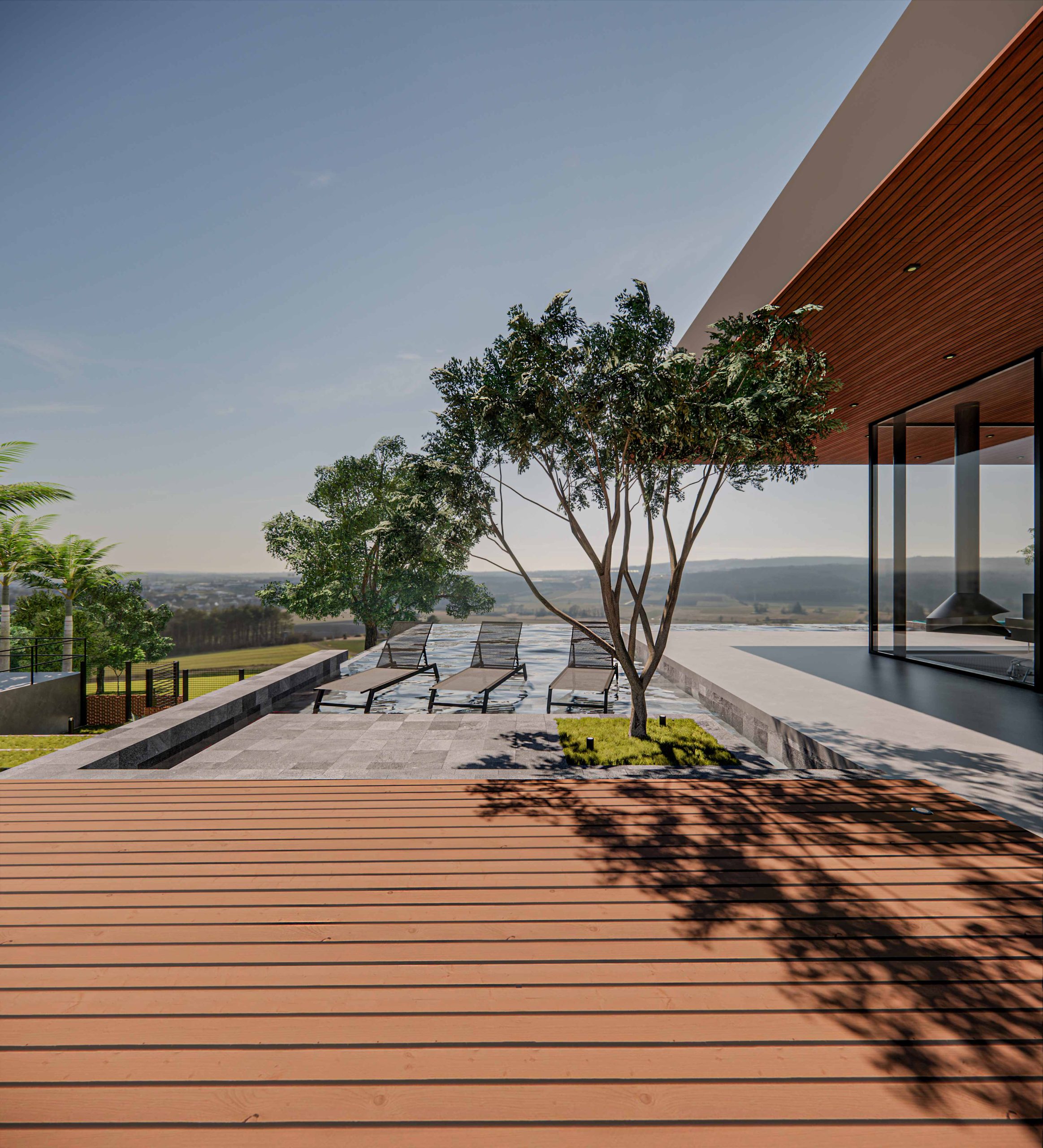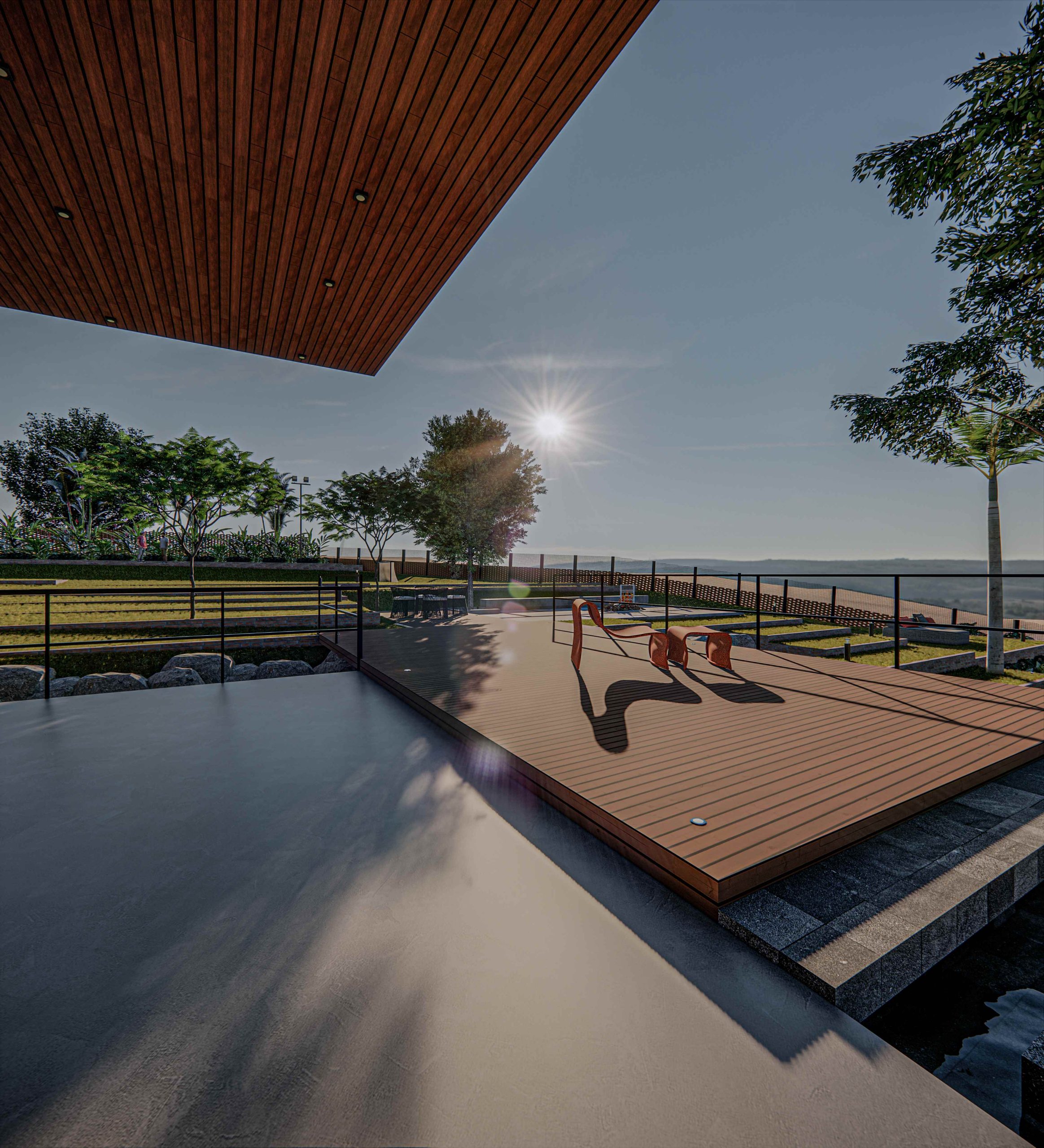 O estilo do projeto busca transmitir uma essência simples, elegante e natural, através dos espaços e dos materiais, mostrando respeito pela natureza e proporcionando a família sensação de tranquilidade e serenidade. Cada ambiente conduzirá a melhoria das experiências ao ar livre, contemplando e vivenciando a qualidade de vida elevada que a natureza proporciona.