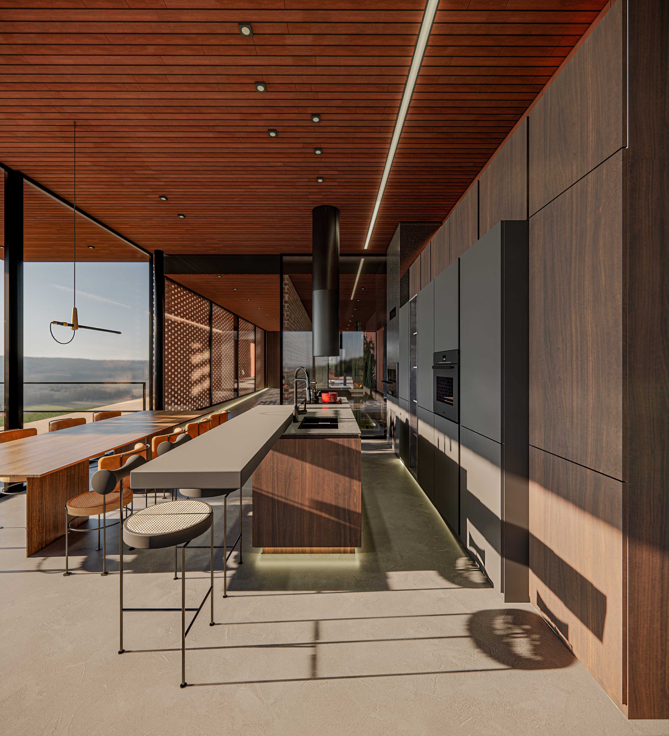 Através de um planejamento funcional de acordo com o cotidiano familiar, o uso de linhas e estruturas simples e de materiais naturais como ornamentação dos espaços, é construído ambientes suaves e aconchegantes, tanto para a moradia quanto para o trabalho no campo.