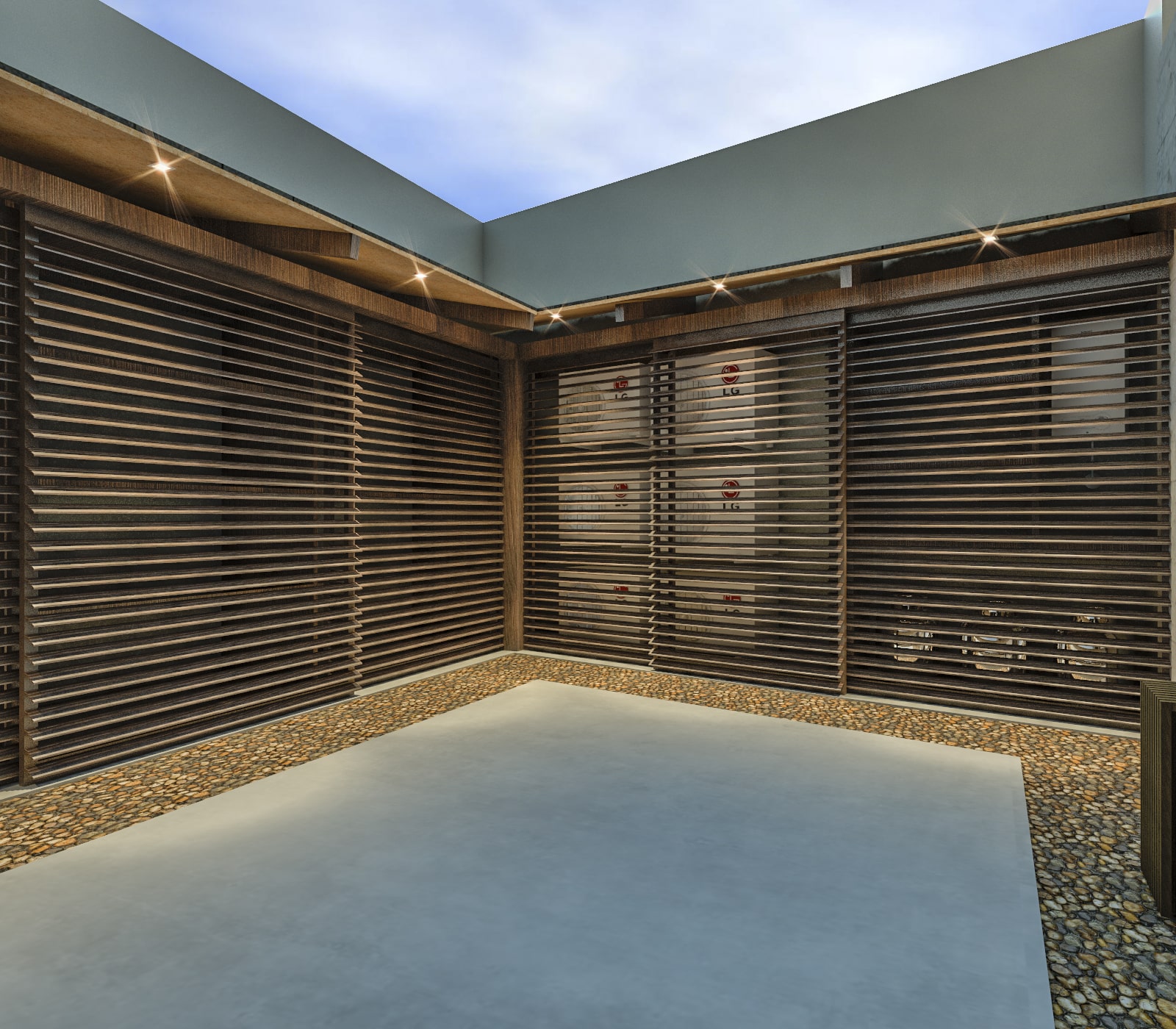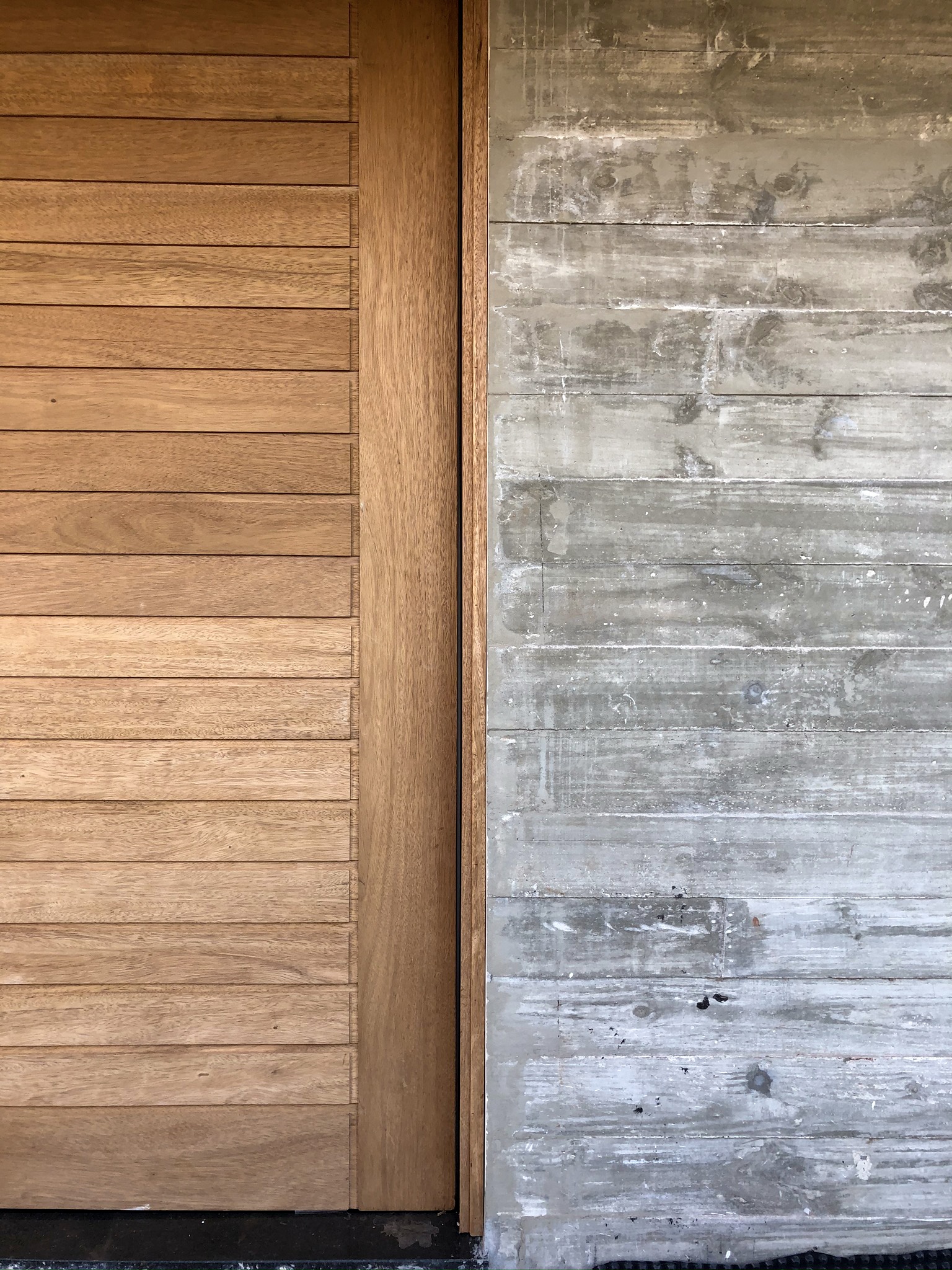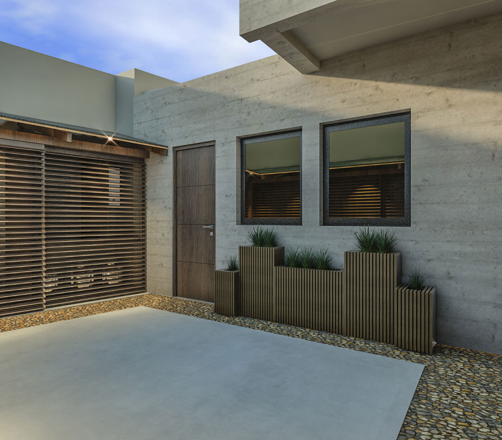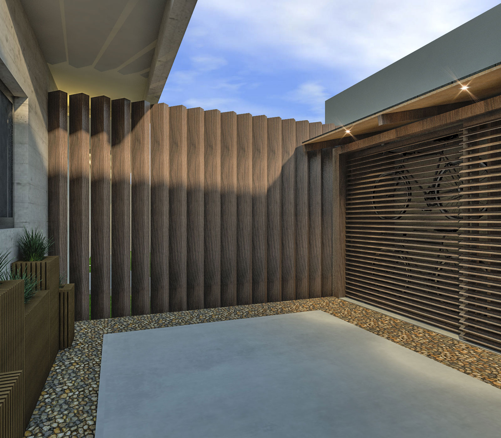 O projeto dessa residência consiste em linhas modernistas, mas, sobretudo, alma orgânica, priorizando a naturalidade dos materiais. A garapeira ripada, presente em grande parte da fachada e também nos espaços internos, aquece a linguagem modernista.