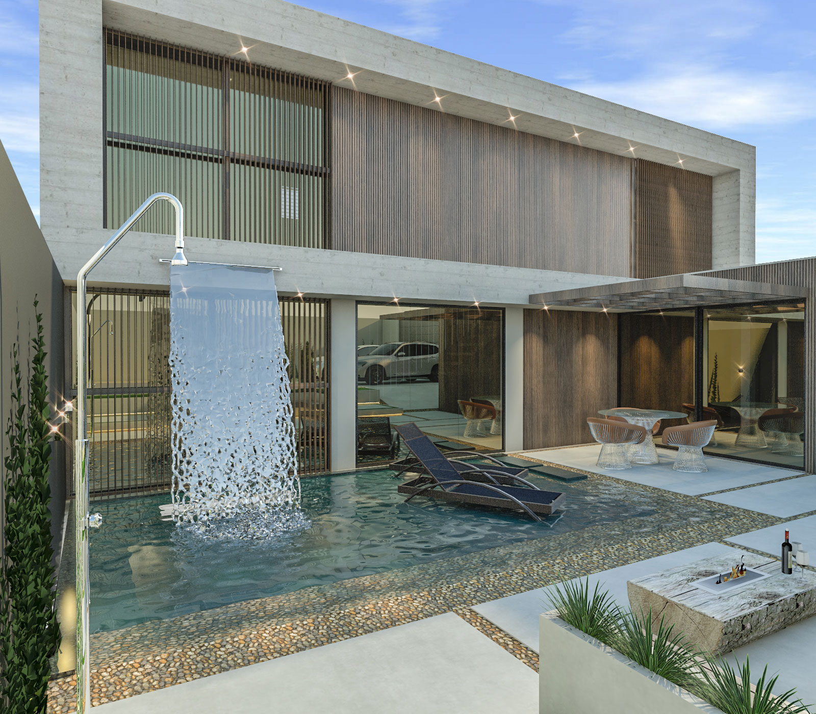 MB Residence transmite um misto de sensações, conectando homem-construção-natureza. A residência prioriza áreas sociais, dando maior ênfase para a área gourmet, o pátio com quadra de basquete e a piscina.